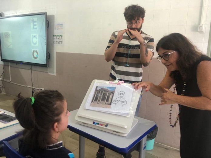 Assim como a Milena, outros cinco alunos iniciaram este ano na Emef BS, que atende em turno integral 43 estudantes. Na mesma turma, Victor Hugo, filho de pais surdos, que já chegou à escola entendendo alguns sinais, por meio da convivência familiar, socializa e brinca com os novos colegas de classe. “O pai dele passou pela nossa escola há muitos anos e, hoje, mesmo morando em Sapucaia do Sul, escolheu trazer o filho para estudar aqui, o que pra nós é uma honra”, disse a orientadora Evanise Luz, que atua na escola há 18 anos.