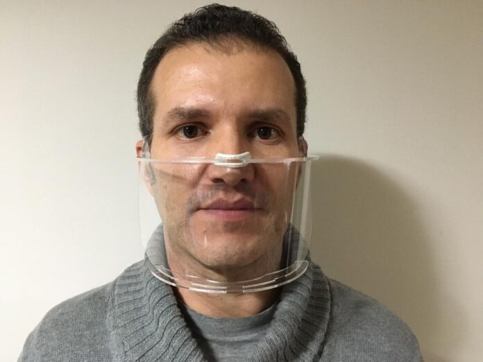 O casal disse que a estrutura da máscara é fechada tanto na lateral quanto nas partes superior e inferior. Como ela é transparente, fica mais difícil perceber que tem essas barreiras.